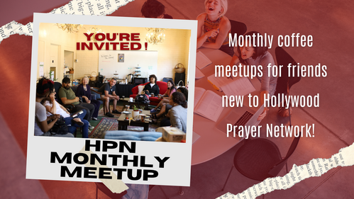 Welcome to HPN Monthly Meetups, the easy way to connect with others who are new to LA or to HPN. We offer these monthly gatherings so that you can meet our directors, Karen Covell (the woman who started it all!) and Kelry Kirschenmann. Learn about our community groups, get insight into other Entertainment resources, and get tips for thriving in LA. All of this is done over a cup of coffee and some breakfast refreshments. Hollywood Prayer Network isn't just a hub - it's a home.